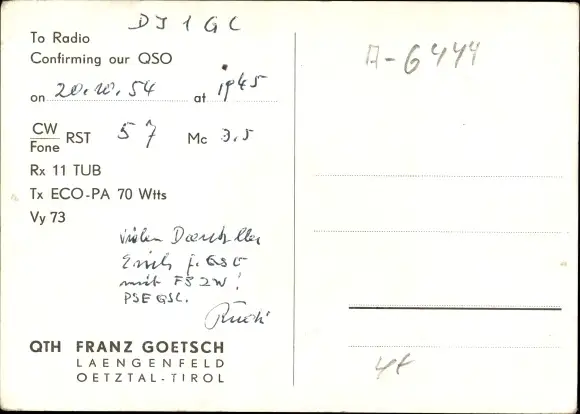 QSL Funkerkarte Längenfeld in Tirol, Panorama vom Ort, Radio OE7GF, Franz Goetsch