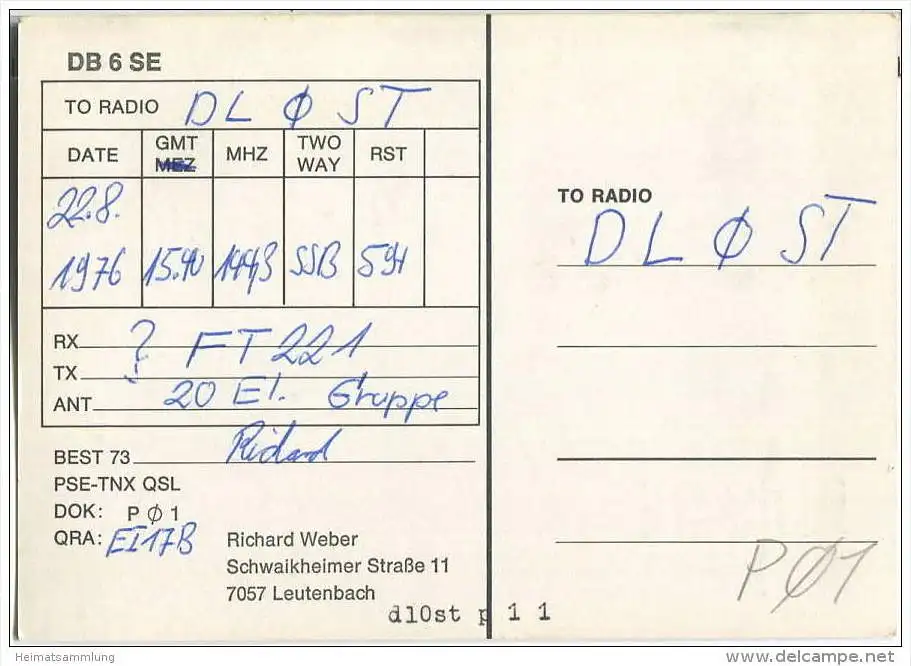 QSL - Funkkarte - DB6SE - Leutenbach - AEG-Telefunken - 1976