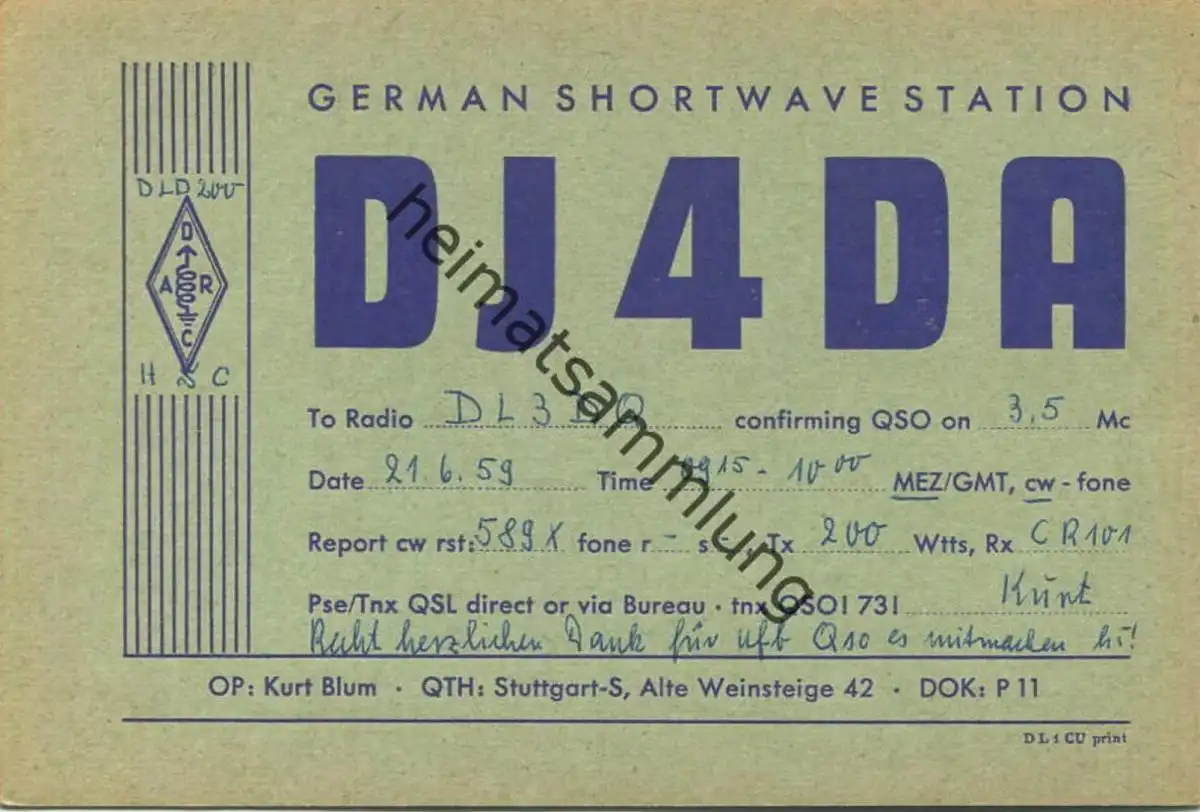 QSL - Funkkarte - DJ4DA - Stuttgart - 1959