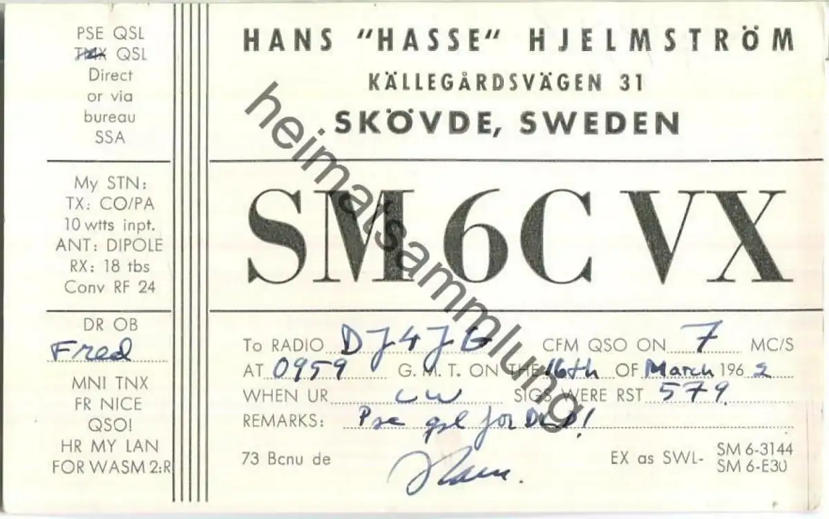 QSL - Funkkarte - SM6CVX - Sweden - Skövde - 1962