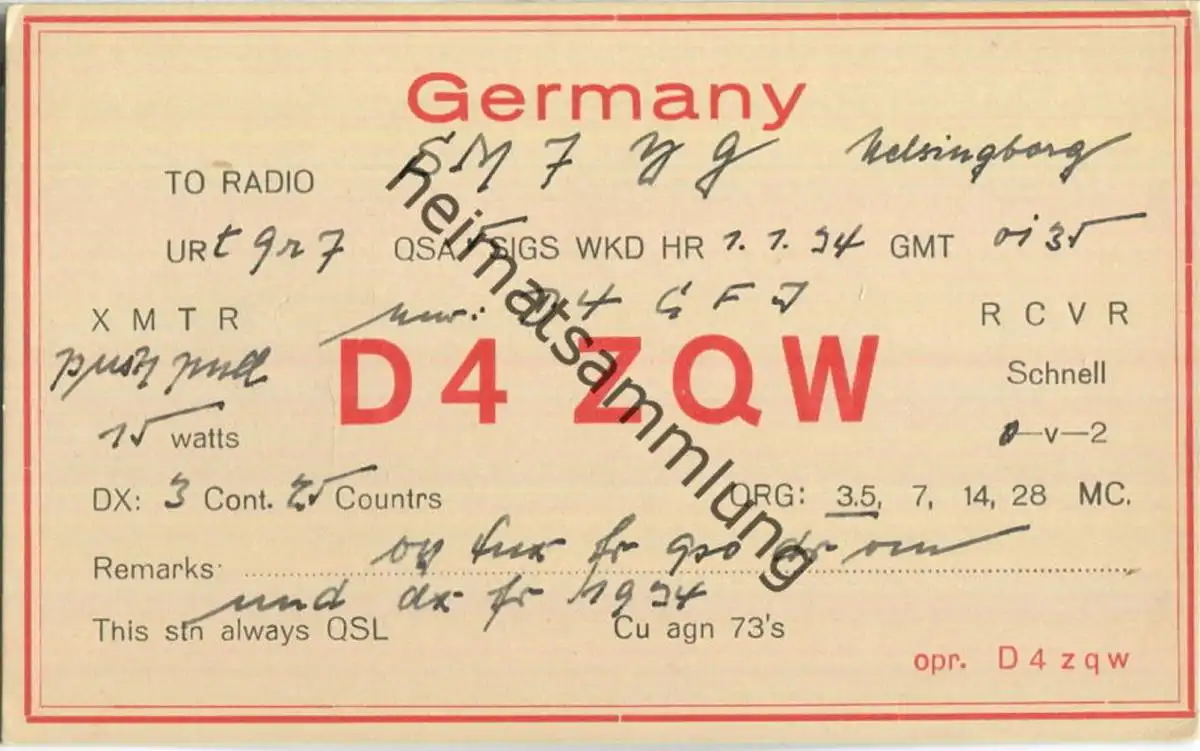 QSL - QTH - D4ZQW - 1934