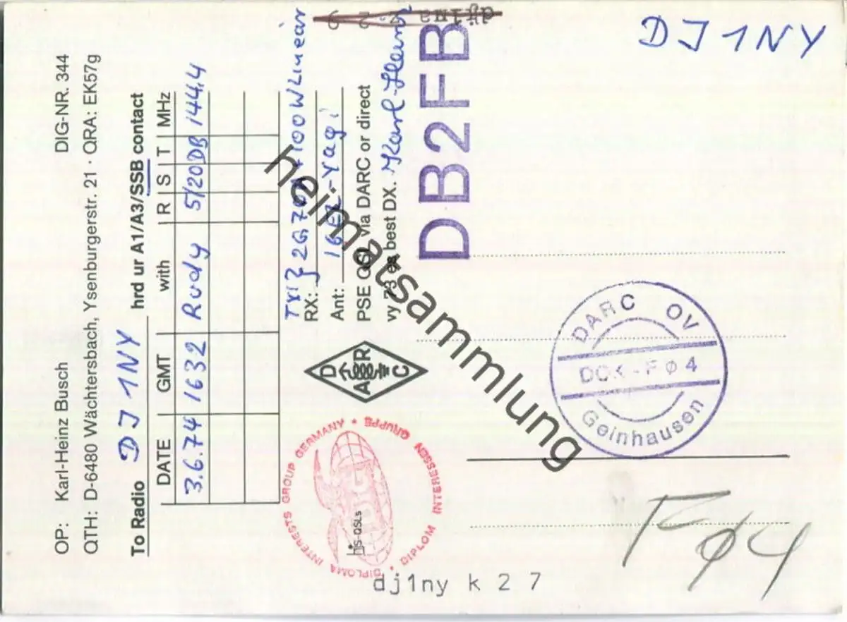 QSL - QTH - Funkkarte - DB2FB - Wächtersbach