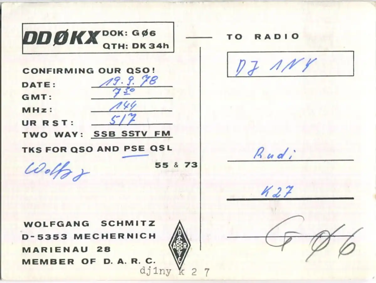 QSL - QTH - Funkkarte - DD0KX - Mechernich