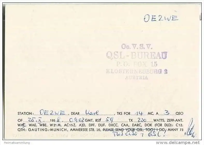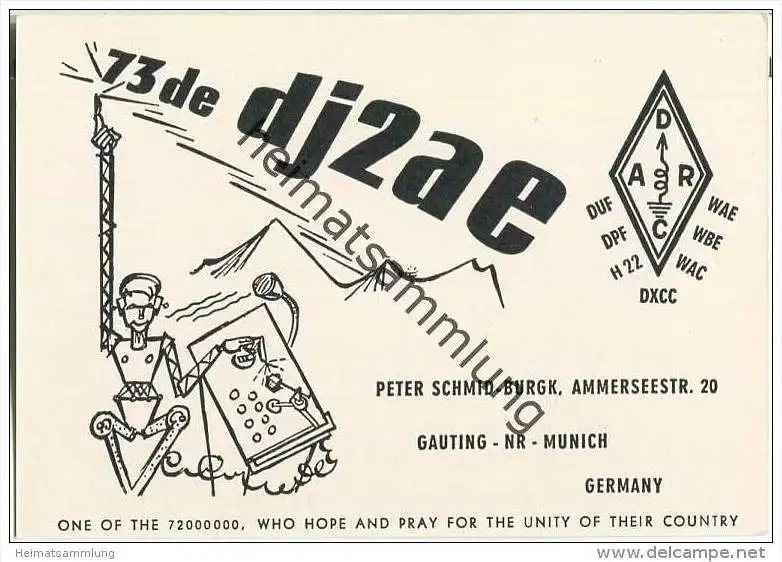 QSL - QTH - Funkkarte - DJ2AE - Gauting - 1958