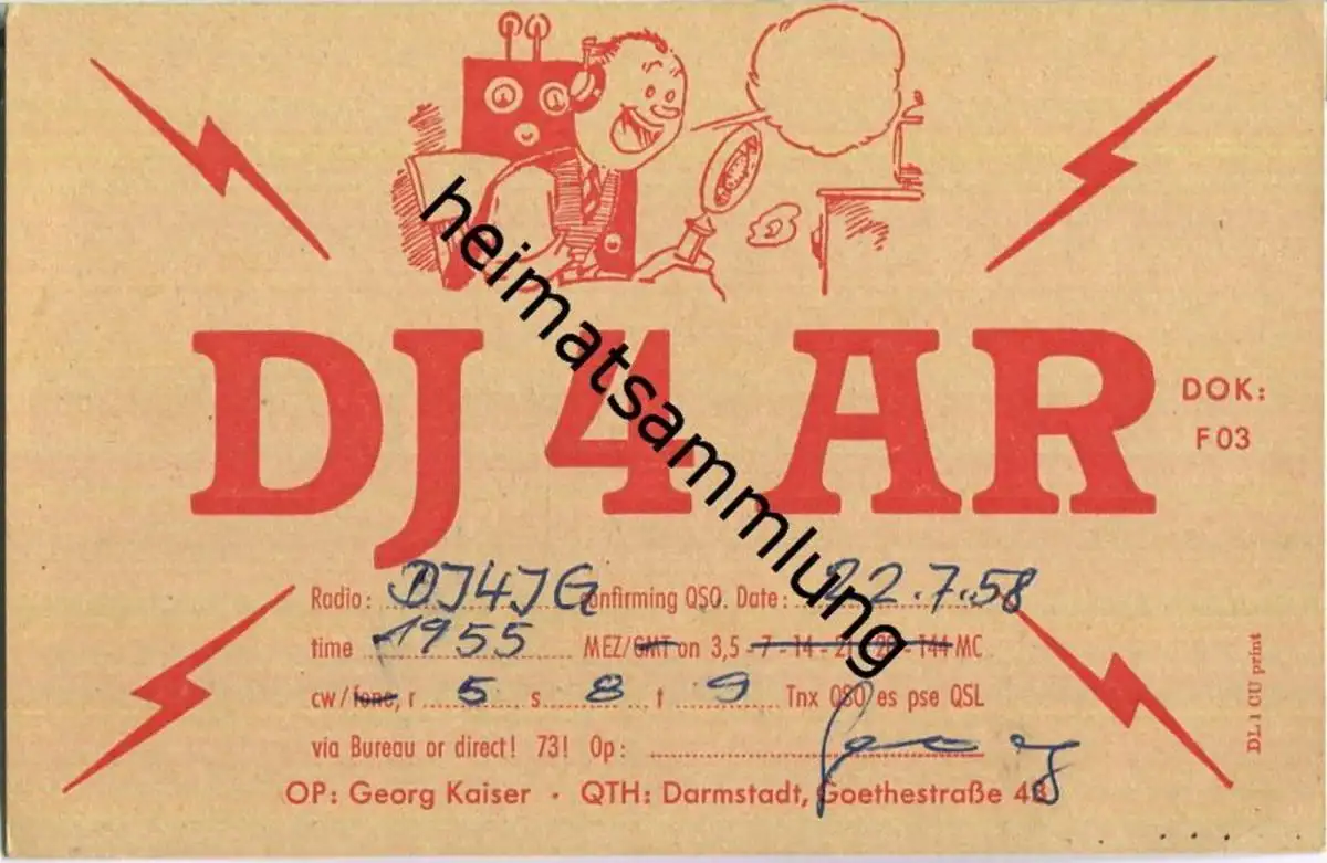 QSL - QTH - Funkkarte - DJ4AR - Darmstadt - 1958