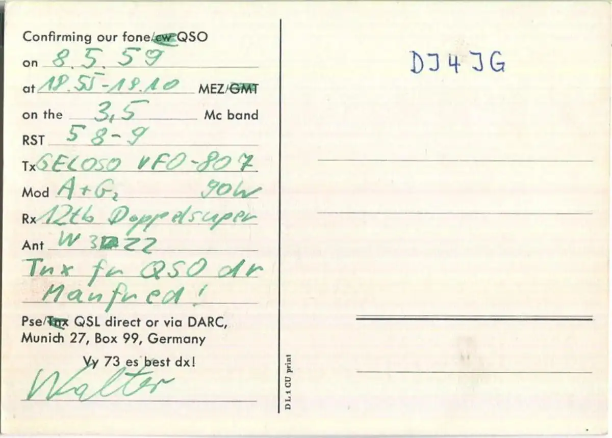 QSL - QTH - Funkkarte - DJ4VN - Soest - 1959