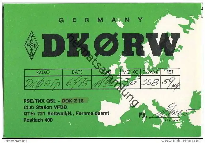 QSL - QTH - Funkkarte - DK0RW - Rottweil - 1975