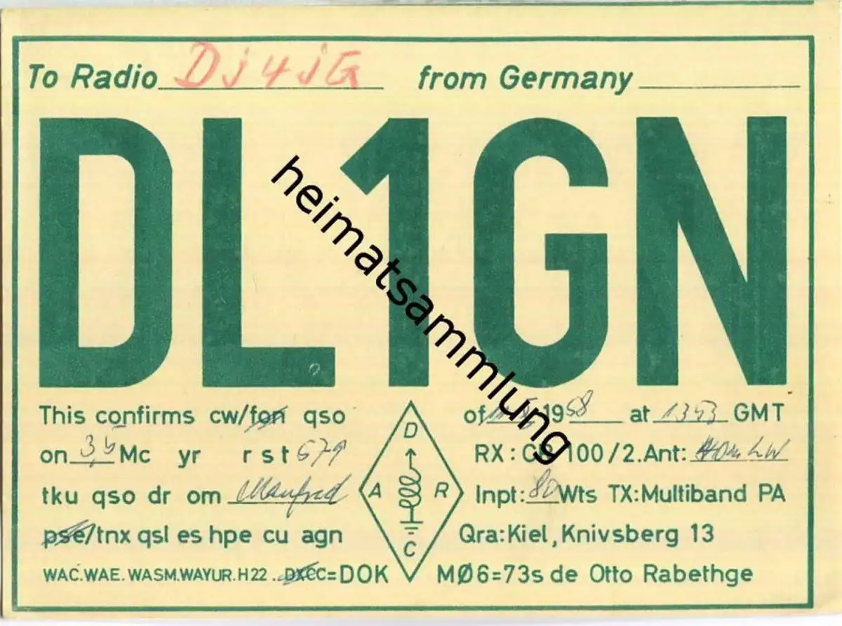 QSL - QTH - Funkkarte - DL1GN - Kiel - 1958 (G56719) *
