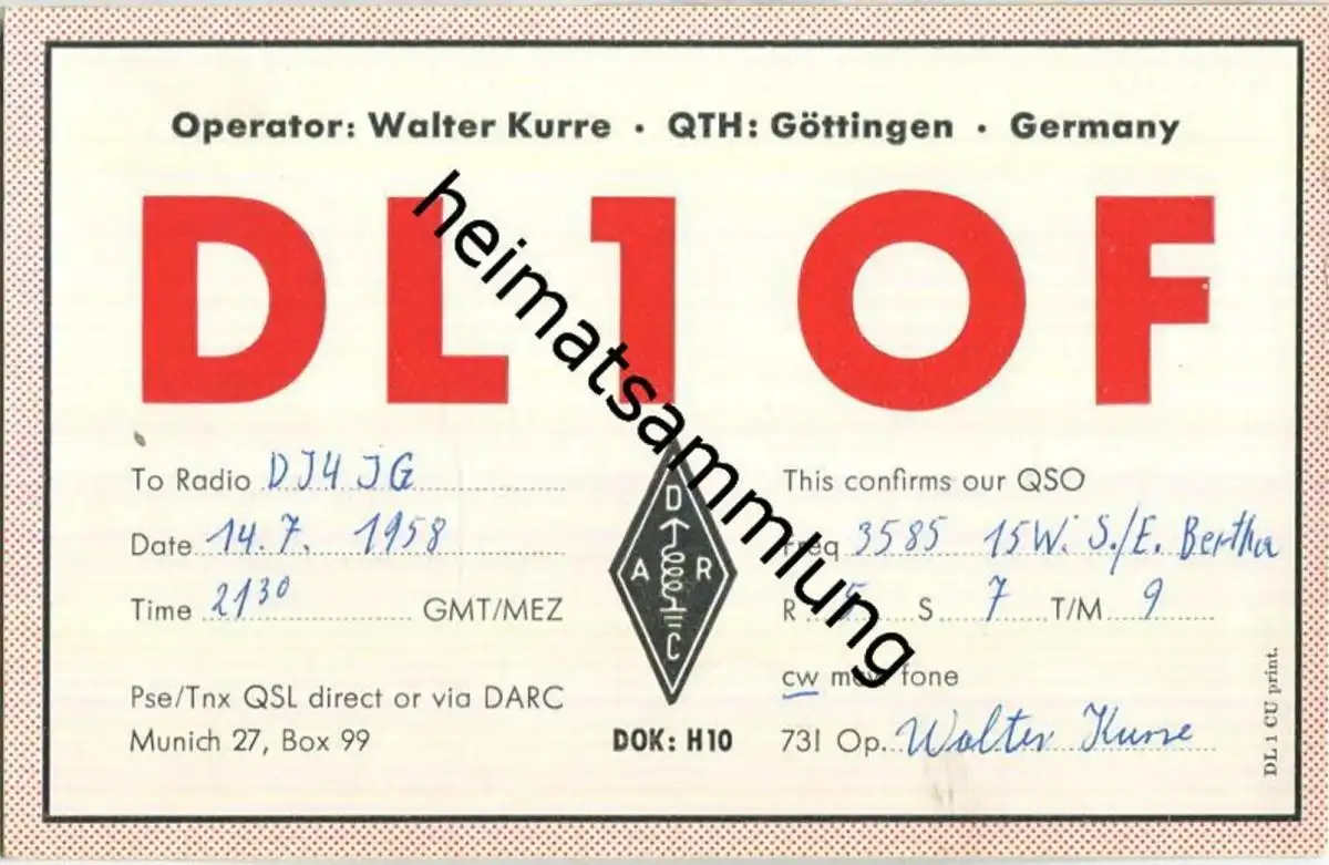 QSL - QTH - Funkkarte - DL1OF - Göttingen - 1958 (G56715) *
