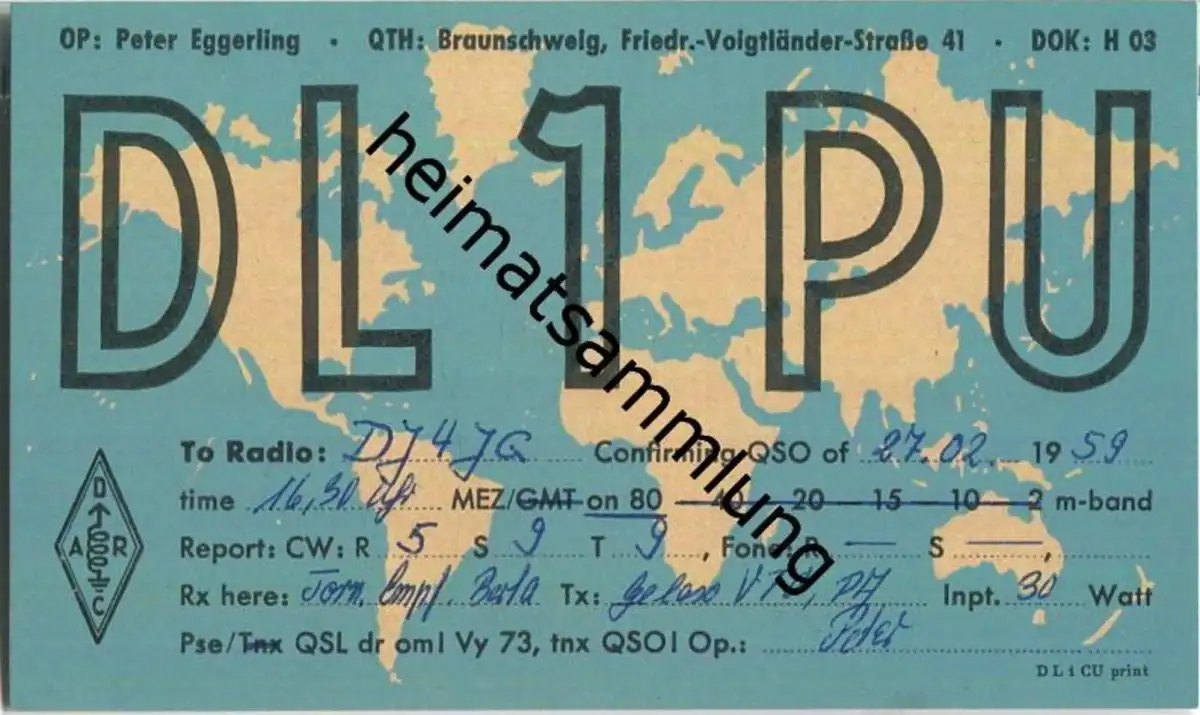 QSL - QTH - Funkkarte - DL1PU - Braunschweig  - 1959