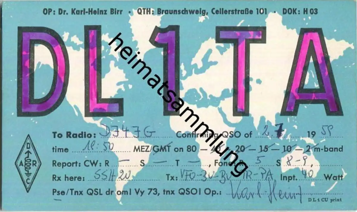 QSL - QTH - Funkkarte - DL1TA - Braunschweig  - 1959
