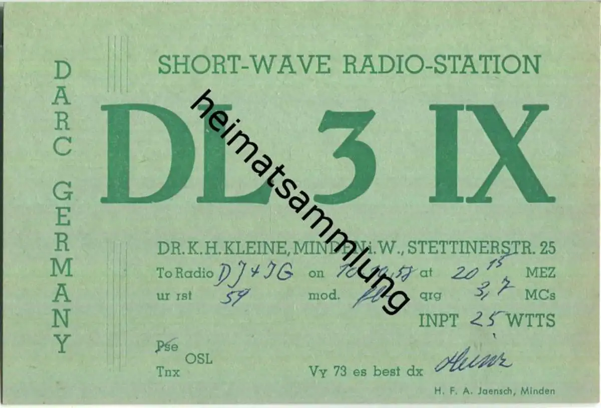 QSL - QTH - Funkkarte - DL3IX - Minden - 1958