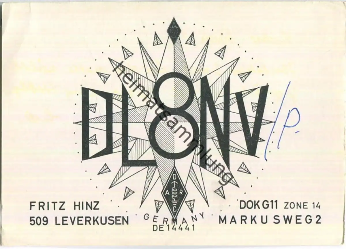 QSL - QTH - Funkkarte - DL8NV - Leverkusen