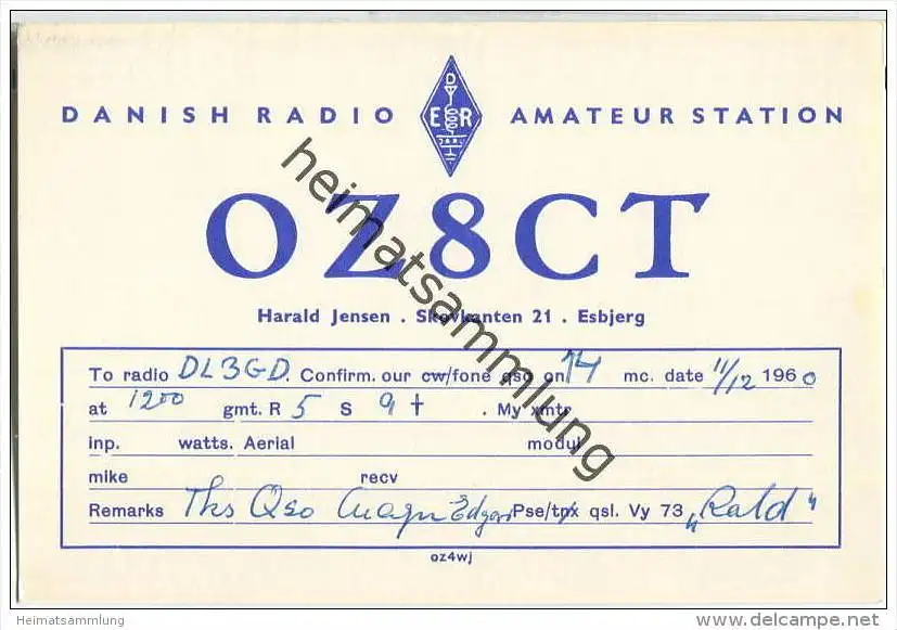 QSL - QTH - Funkkarte - OZ8CT - Denmark - Esbjerg - 1960