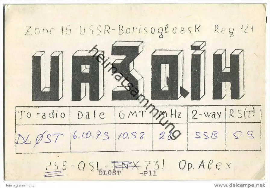 QSL - QTH - Funkkarte - UA3QIH - Russland - Borisoglebsk - 1979