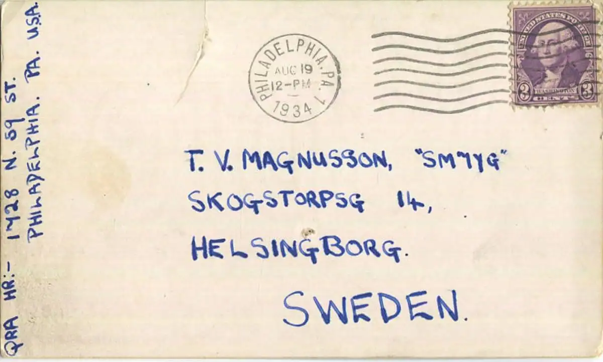 QSL - Radio - W3DIQ - USA - Philadelphia PA. - 1934 - Knicke - Nadelloch mittig (G43159) gel. 1934