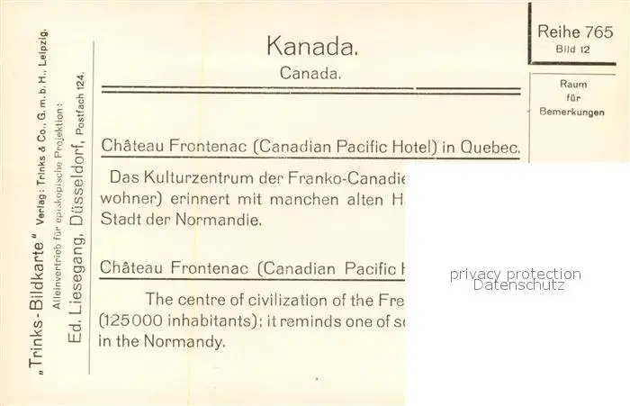 Quebec Chateau Fronenac Quebec postalisch nicht gelaufen 1921-1965 Werbekarte (keine Postkarte) Erhaltung siehe scans [KathaD81] Werbekarte (keine Postkarte) Kathoren