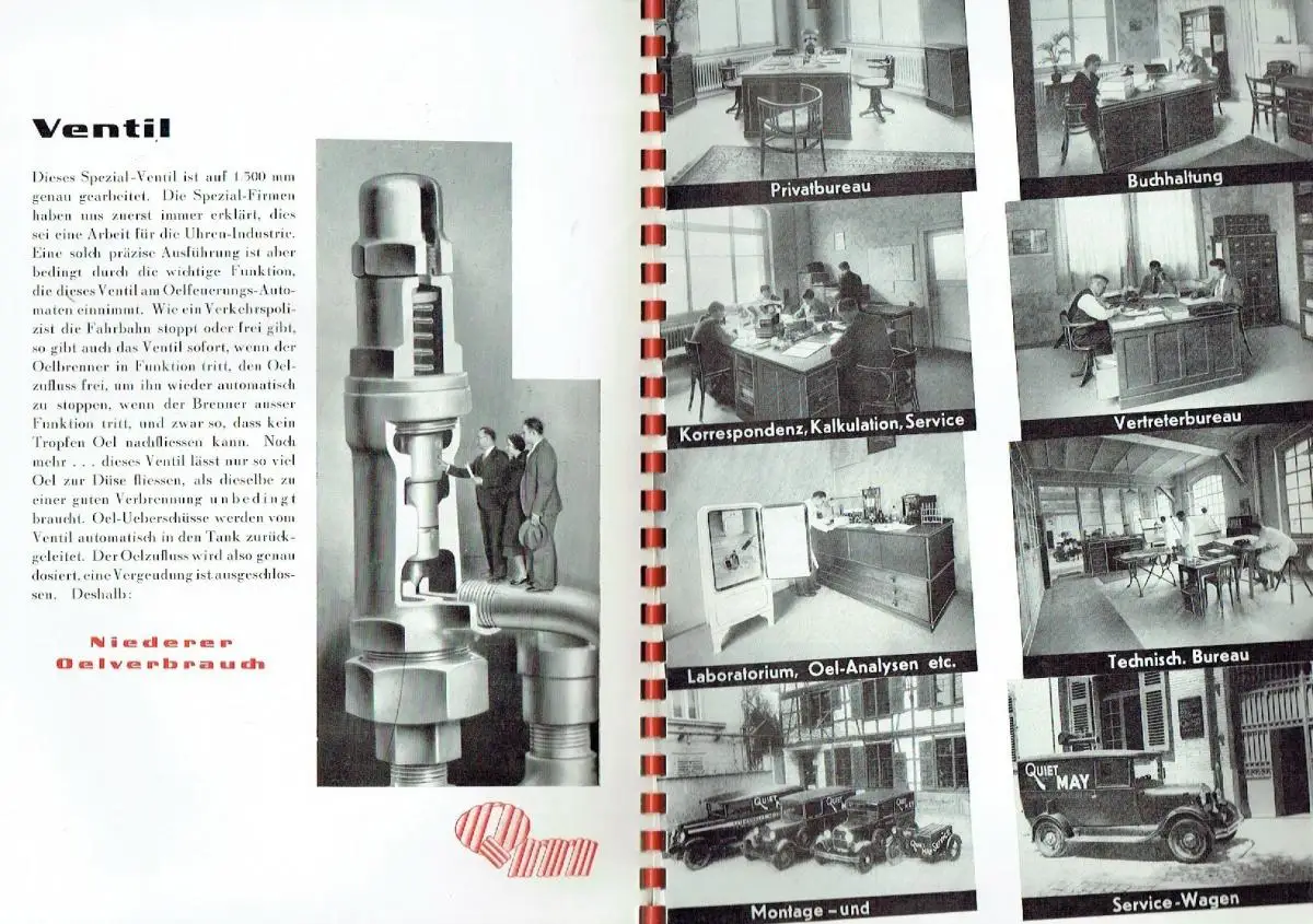 sehr guter Zustand, geringe Gebrauchs- und Alterungsspuren, die Firma stellt ihre Produkte vor: Pumpe, Ölsparer, Filter, Düse, Ventil, Fotos aus der Firma, Kundenschreiben, amtliche Atteste, Referenzen, Beilage: 1500 Referenzen mit Name, Anschrift und Telefonnummer, kartoniert in Kunststoff-Ringbindung, ca. 21 x 29,5, 24 Seiten mit einigen Bildern + Beilage mit 19 Seiten