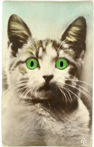 Quietsch Ak Katze mit Plastikaugen, Tierportrait