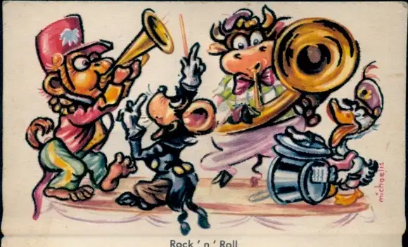 Quietsch Künstler Ak Michaelis, Musizierende Tiere, Orchester, Musikinstrumente