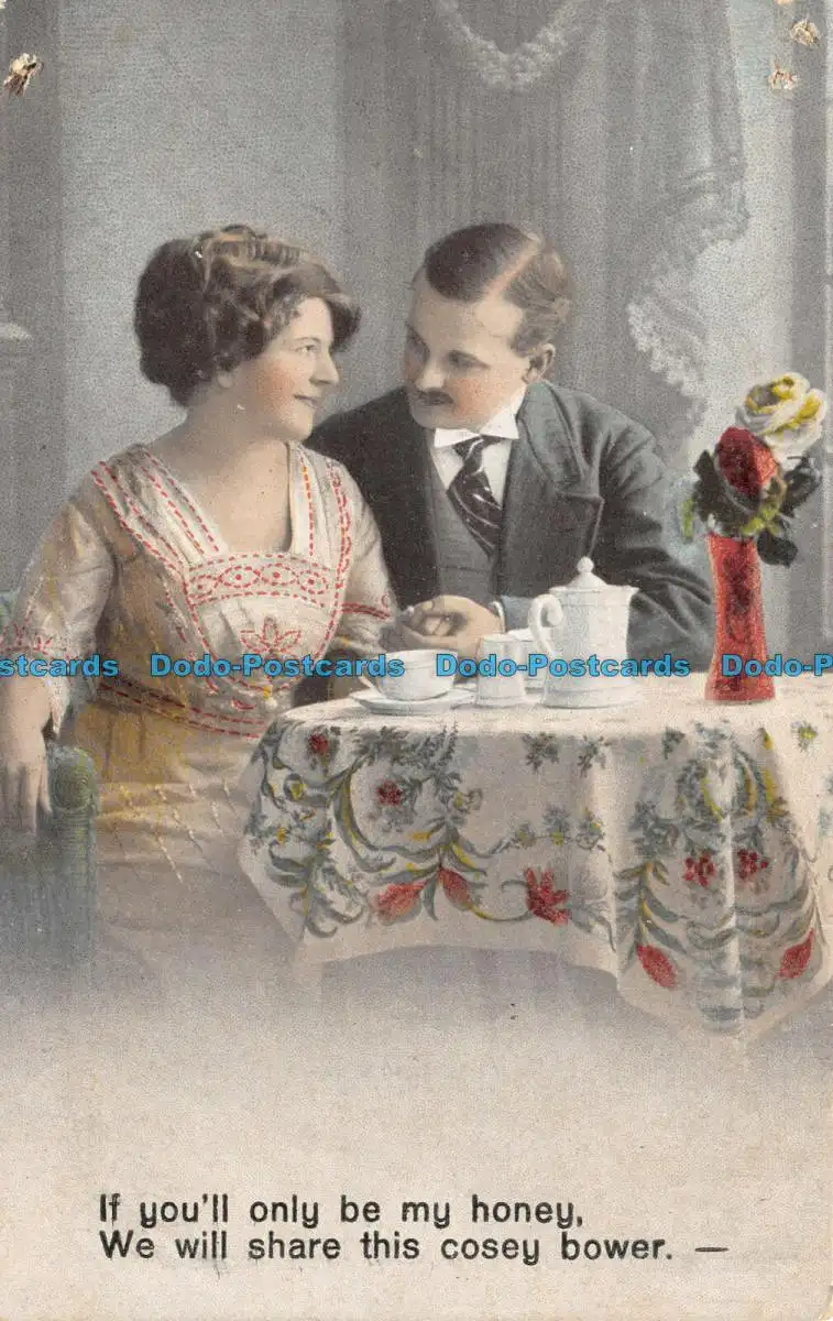 R123121 Alte Postkarte. Frau und Mann in Tischnähe