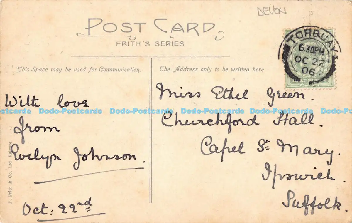 R185304 Torquay von Vane Hill. Serie Friths. 1906