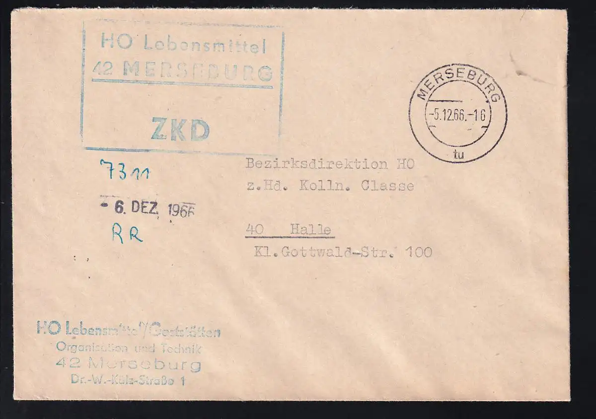 R3 HO Lebensmittel 42 MERSEBURG ZKD auf Brief