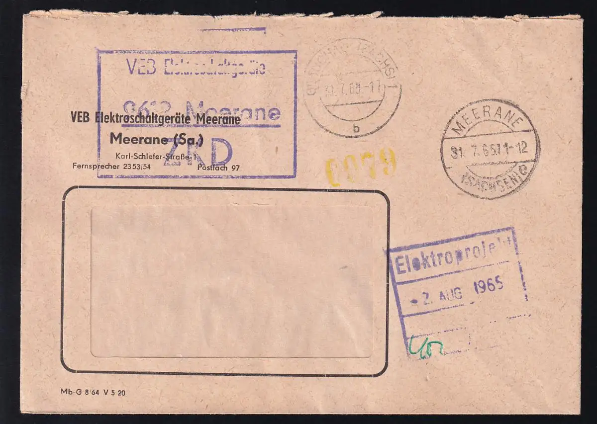 R3 VEB Elektroschaltgeräte 9612 Meerane ZKD auf Fensterbrief