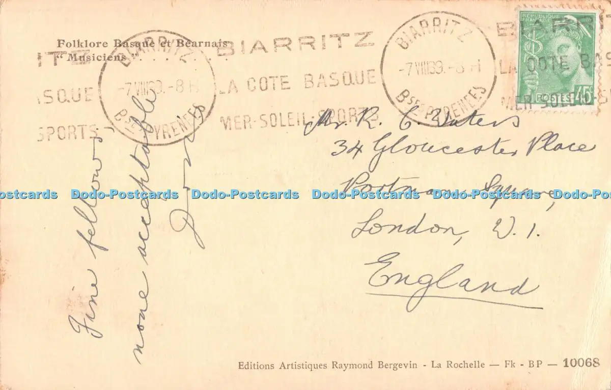 R375081 Folklore Basque et Bearnais Musiciens Editions Artistiques Raymond Berge