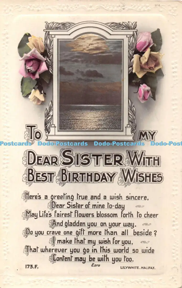 R406151 To My Dear Sister with Best Birthday Wishes 173 F Lilywhite Ezra RP 1919