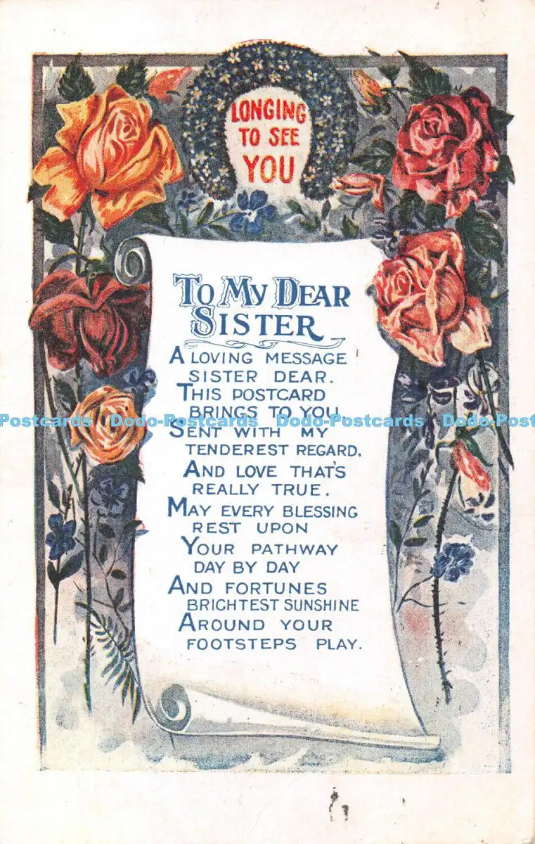 R431551 Sehnsucht, dich meiner lieben Schwester zu sehen C P C 1918