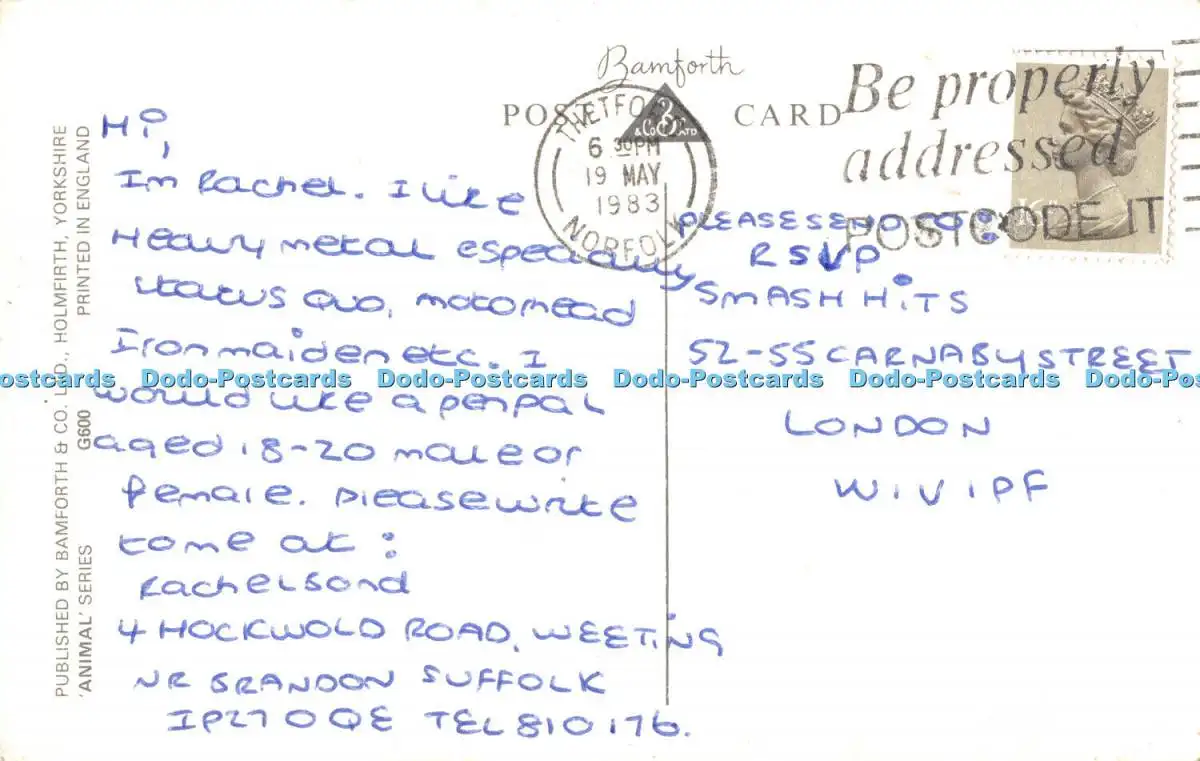 R494711 Welpen Bamforth Animal Serie G600 1983 Bamforth
