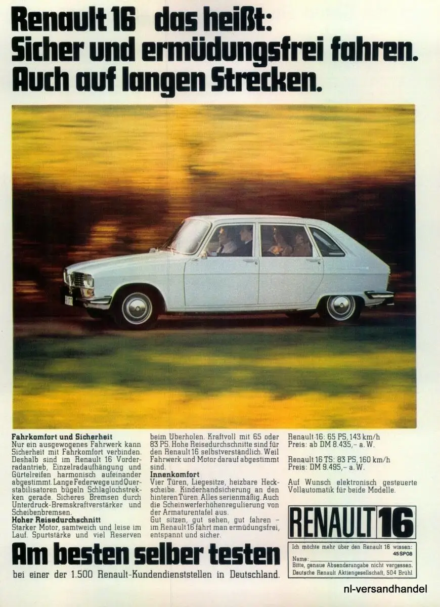 RENAULT-16-65PS-1971-Reklame-Werbung-genuine Advert-La publicité-nl-Versand