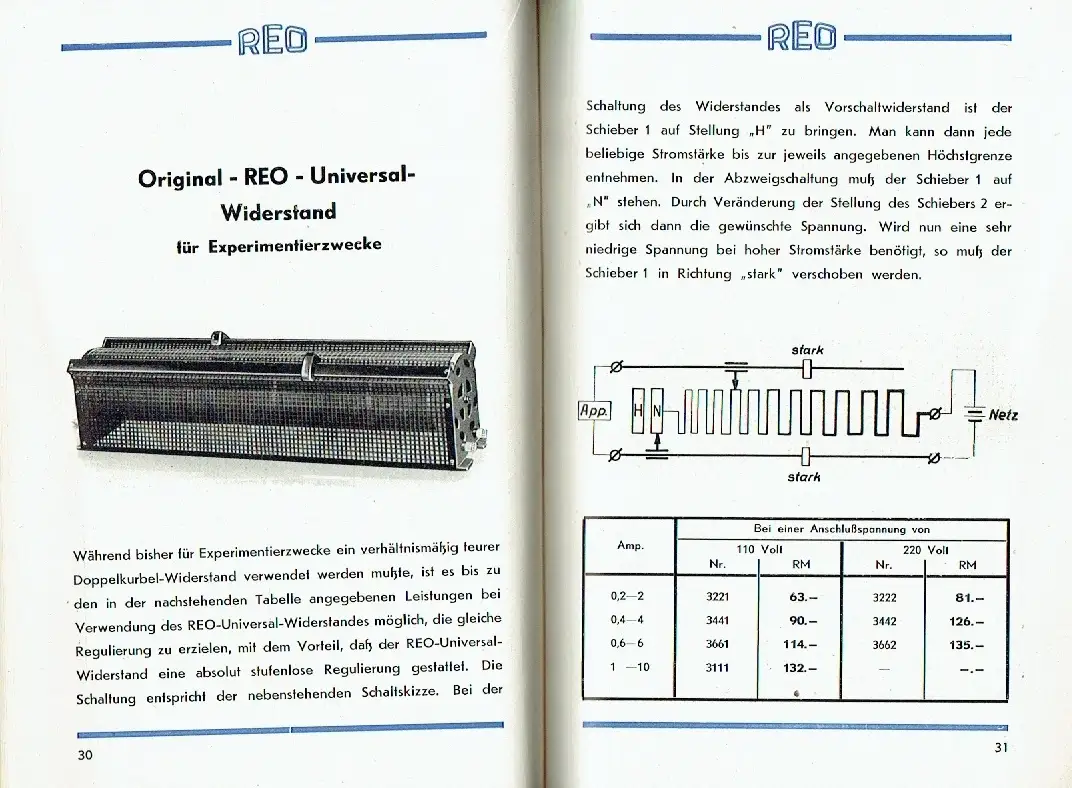 Herausgeber: REO - Boris von Wolff, Spezialfabrik für elektrische Widerstände