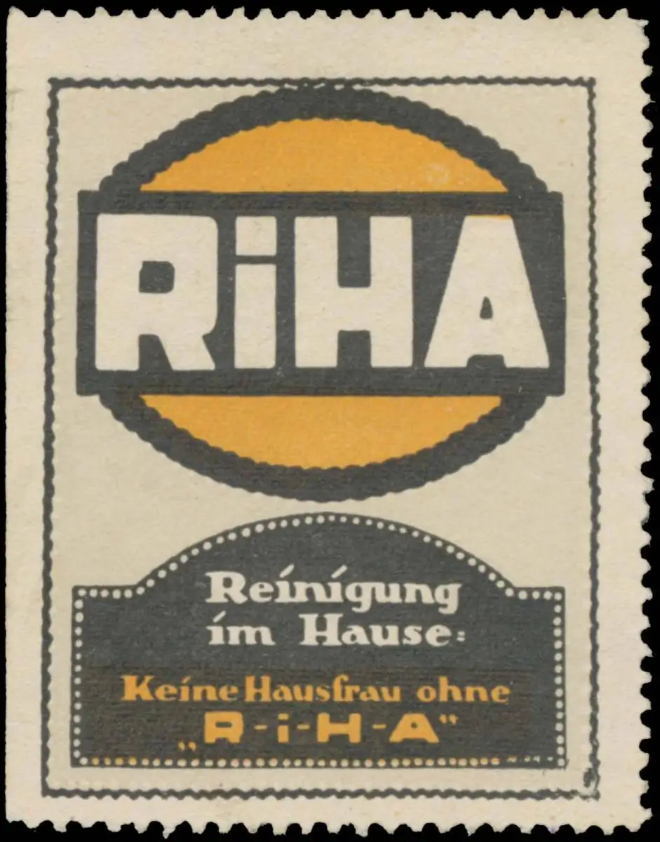 keine Hausfrau ohne Riha, Größe/Zustand: 7x6 , guter Zustand, Original alte Reklamemarke die seinerzeit für die Werbung benutzt wurde