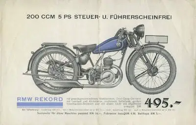 RMW Rekord 200 cm Prospekt ca. 1933