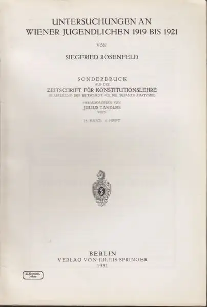 Bln., Springer 1931. gr.-8°. S. 694-731. OBrosch. - (Sonderdruck aus Zeitschrift für Konstitutionslehre 15. Bd., 6. Heft Hrsg. v. Julius Tandler)