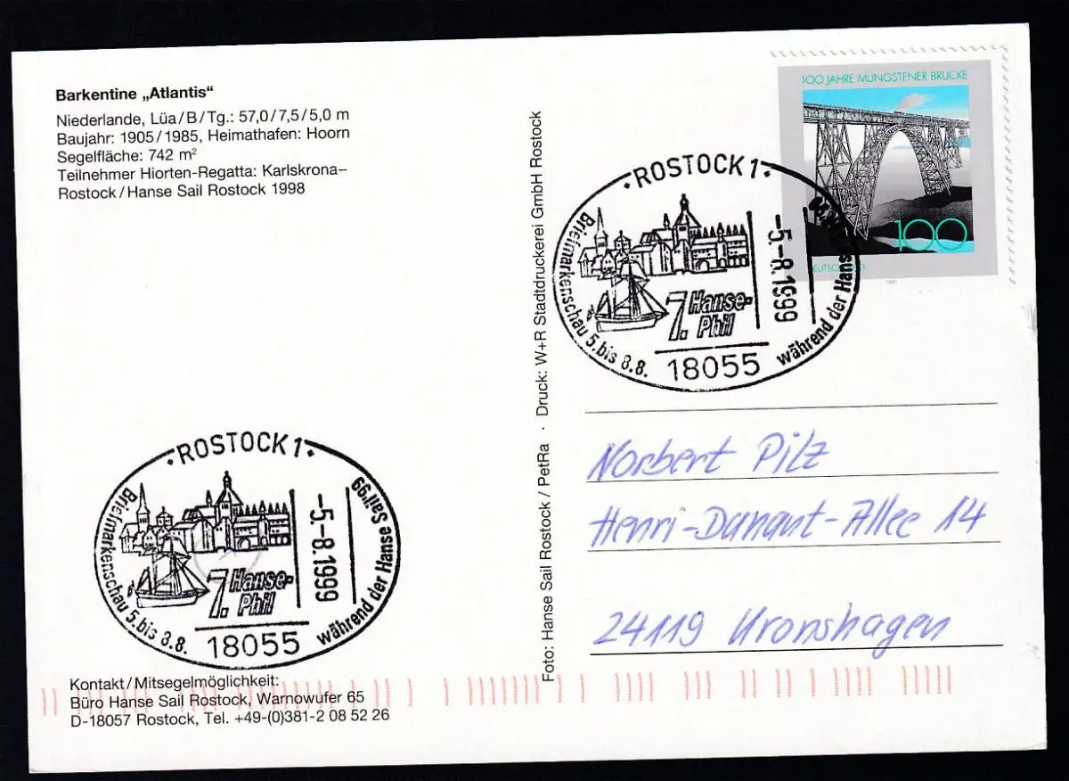 ROSTOCK 1 18055 7. Hanse Phil Briefmarkenschau 5.-8.8. während der Hanse Sail
