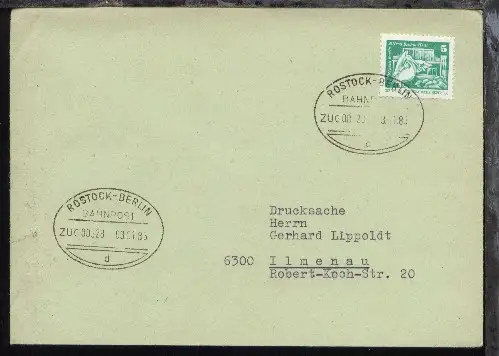 zwei sehr schöne Bahnpostbelege, einmal HUSUM-GARDING von 1916 - ohne Zugnummer aufgrund der Furcht vor feindlicher Spionage - und ERFURT-EISENACH von 1965. Vielen Dank, bin mit der Lieferung sehr zufrieden.