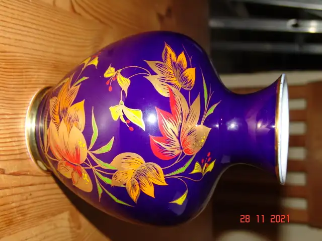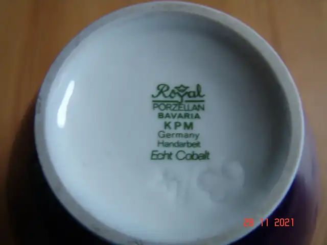 Angeboten wird eine edle Porzellanvase der Marke ROYAL BAVARIA KPM GERMANY mit wunderschönem Dekor , Handarbeit, Echt Kobalt, mit Malernummer.