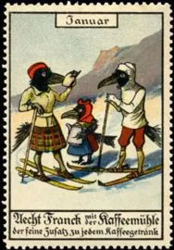 Aecht Franck mit der Kaffeemühle der feine Zusatz zu jedem Kaffeegertänk. Monatsserie, Größe/Zustand: 6x4 , guter Zustand, Original alte Reklamemarke die seinerzeit für die Werbung benutzt wurde