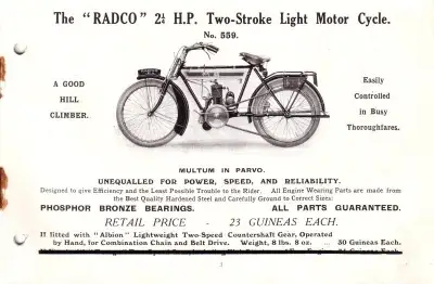 Radco 2,25 H.P. two Stroke 211 c.c. Prospekt 1914