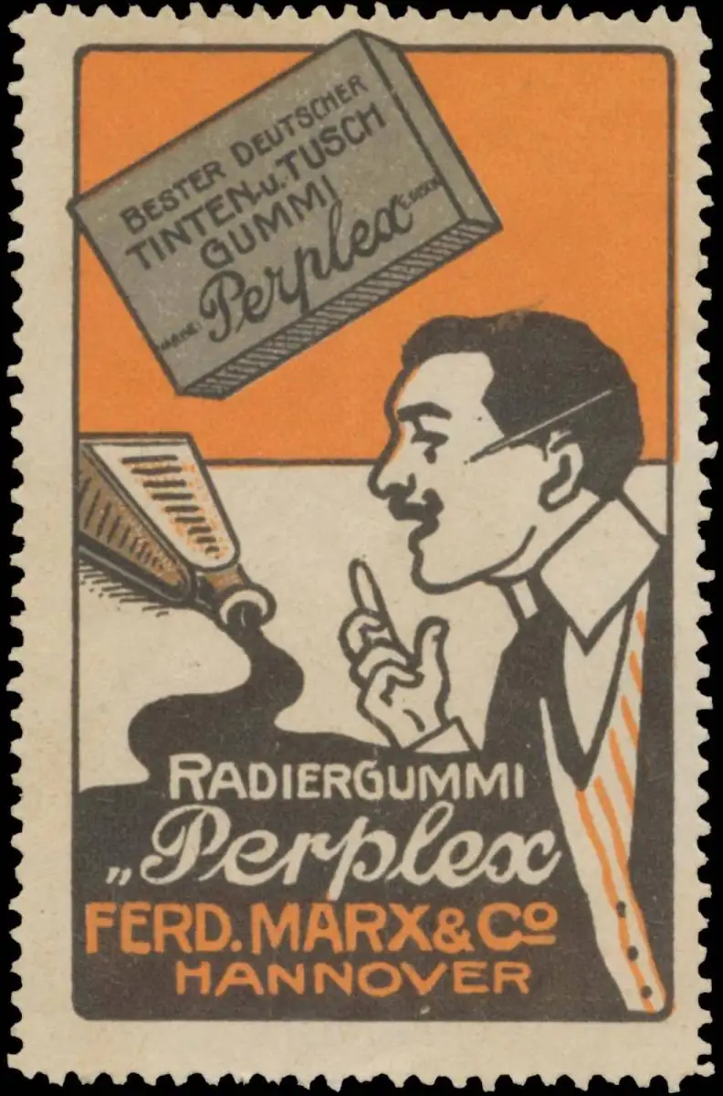 Bester deutscher Tinten- und Tuschgummi., Größe/Zustand: 6x4 , guter Zustand, Original alte Reklamemarke die seinerzeit für die Werbung benutzt wurde