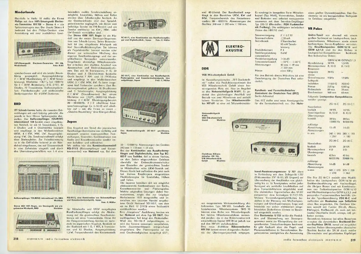 guter bis sehr guter Zustand, Gebrauchs- und Alterungsspuren: die ersten beiden Blatt am unteren Rand etwas fleckig und wellig, restliche Seiten sauber und ordentlich - Seiten teils etwas eselsohrig, Bericht von der Leipziger Frühjahrsmesse (27 Seiten) - Bauelemente - Meßtechnik und Datenerfassung - Fernsehen - Radio - Antennen - Elektroakustik - Datenverarbeitungsanlagen - Technologische Ausrüstungen - Ein digitales Reaktionszeitmeßgerät (3 Seiten) - Seitenbandfilter für Stereofernempfang (Diskussion) - Typenbezeichnungssystem für polnische Halbleiterbauelemente, Softcover, ca. 21 x 29,5, 36 Seiten mit zahlreichen Bildern