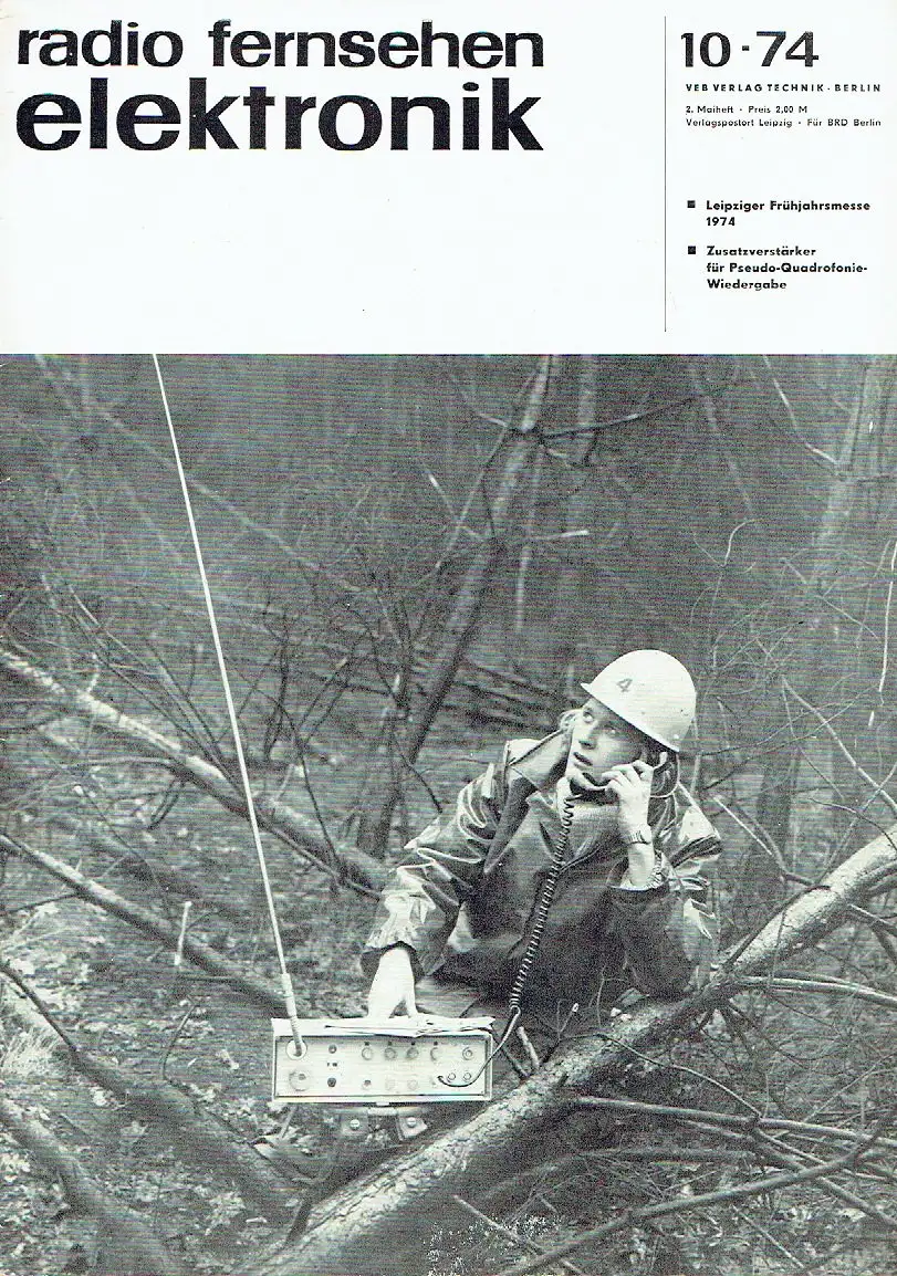 sehr guter Zustand, Gebrauchs- und Alterungsspuren: Seiten teils etwas eselsohrig, Leipziger Frühjahrsmesse 1974 (26 Seiten) - Bauelemente - Fernsehen - Radio - Elektroakustik - Antennen - Meßtechnik und Datenerfassung - Datenverarbeitungsanlagen - Nachrichtengeräte - Technologische Ausrüstungen - Zusatzverstärker für Pseudo-Ouadrofonie-Wiedergabe - Integrierter Steuersatz für Phasenanschnittssteuerungen - Ist eine Antennensteckdose noch ausreichend?, Softcover, ca. 21 x 29,5, 36 Seiten mit zahlreichen Bildern