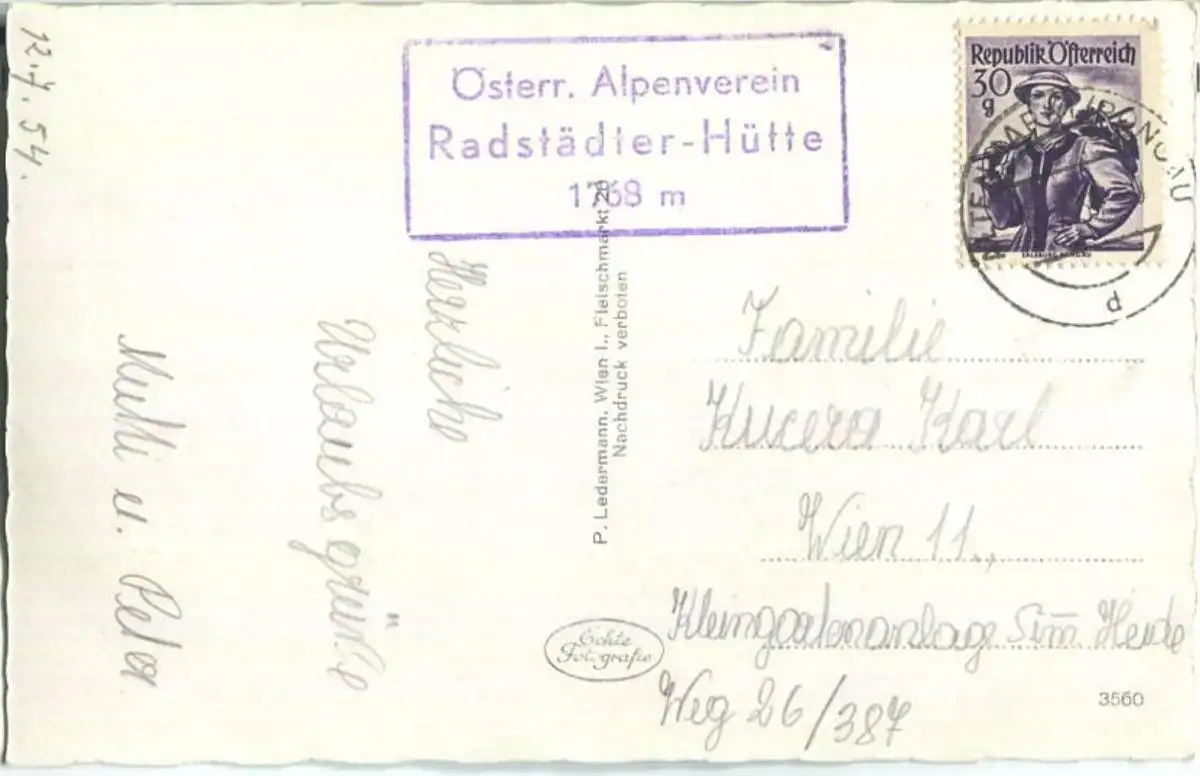 Radstädter Hütte am Rossbrand - Dachstein - Verlag P. Ledermann Wien (E97563) gel. 1954
