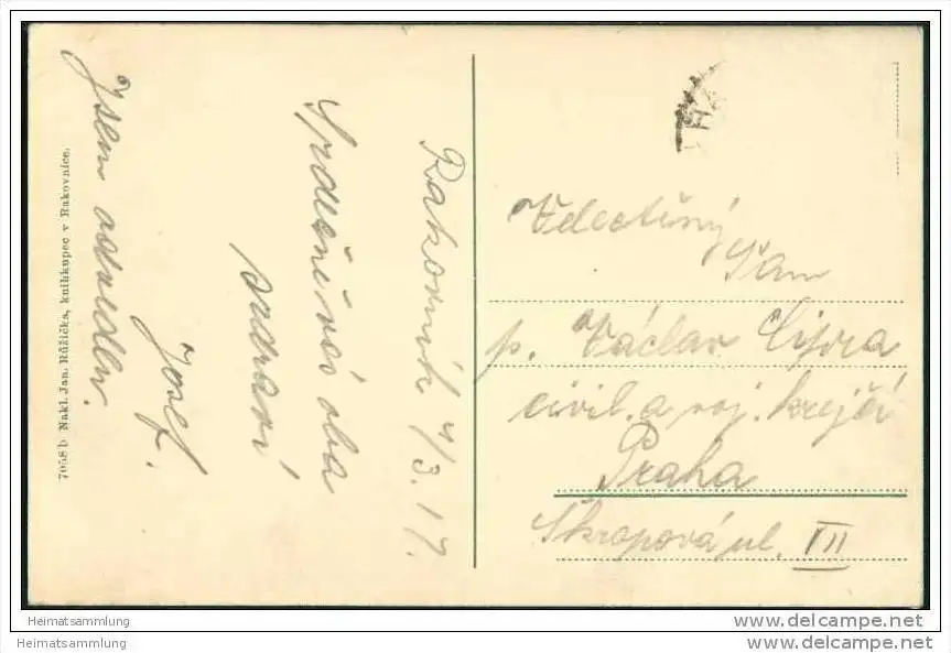 Rakovnik - Rakonitz - Nakl. Jan Ruzicka Rakovnice - Eckknick oben rechts - Briefmarke entfernt (E4503) gel. 1917