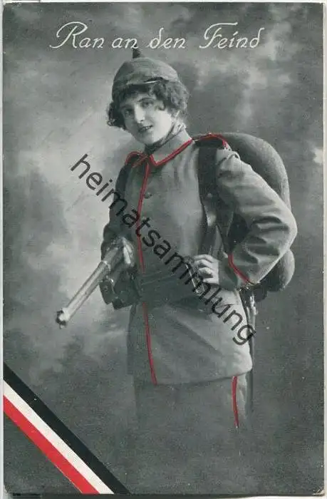 Ran an den Feind - Frau in Uniform mit Gewehr (G38133) gel. 1916