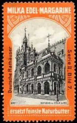 Milka Edel - Margarine ersetzt feinste Naturbutter. Deutsche Rathäuser. Serie II, Bild 7, Köln, Größe/Zustand: 6x3 , guter Zustand, Original alte Reklamemarke die seinerzeit für die Werbung benutzt wurde