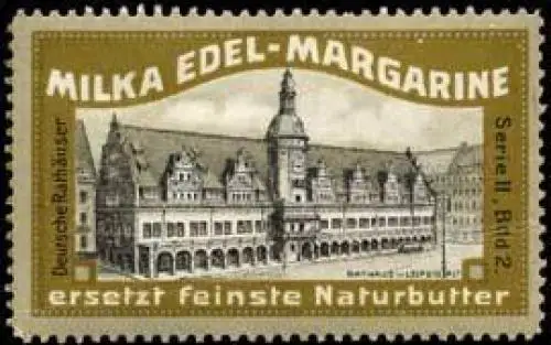 Serie II : Deutsche Rathäuser, Bild 2, Milka Edel-Margarine, Größe/Zustand: 3x6 , guter Zustand, Original alte Reklamemarke die seinerzeit für die Werbung benutzt wurde
